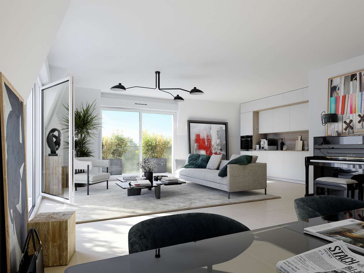 La résidence offre une architecture contemporaine et épurée avec des menuiseries en aluminium, occultations en brise-soleil orientables et façades recouvertes d'un enduit à la chaux, la garantie d'un revêtement extérieur pérenne et écologique.