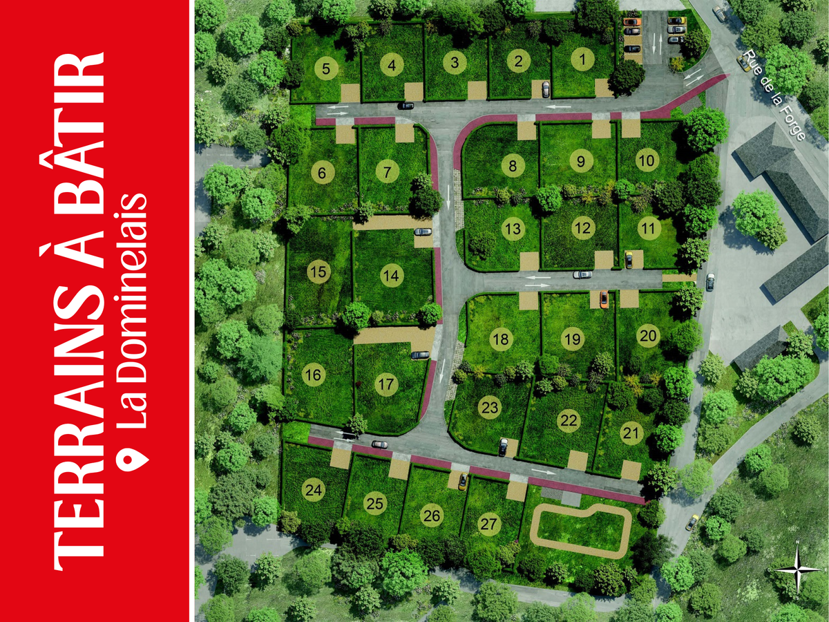 TERRAINS À BÂTIR à La Dominelais, charmante commune située sur l'axe Rennes - Nantes. Ici, dans la Lande de la Minière, Rue de la Forge, abrite 27 terrains constructibles "Les Jardins de Lina" d'une superficie allant de 386 à 642 m².