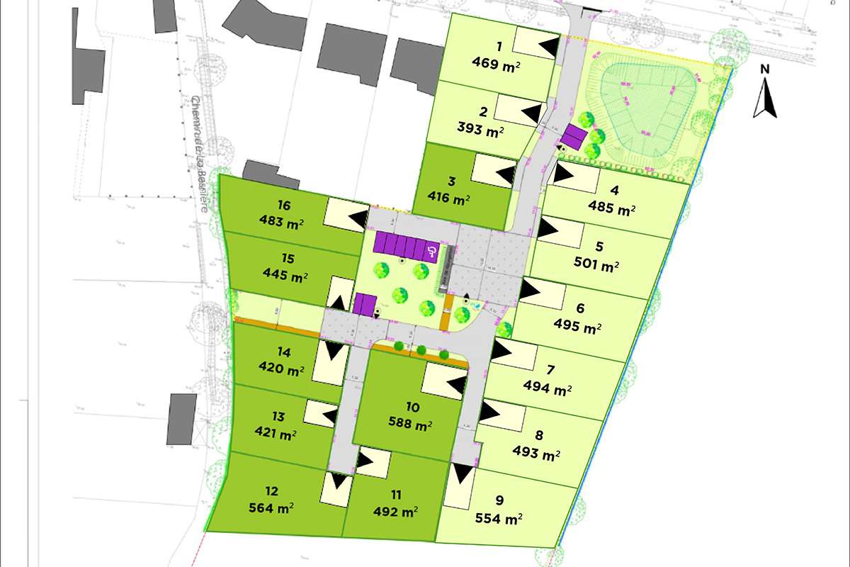 Le Clos de la Pastorale propose 16 terrains à bâtir, dont 8 libres de constructeurs, de 393 à 588 m², à partir de 44 100 € TTC*. Un emplacement privilégié pour concrétiser votre projet de construction dans un environnement calme, verdoyant et convivial.