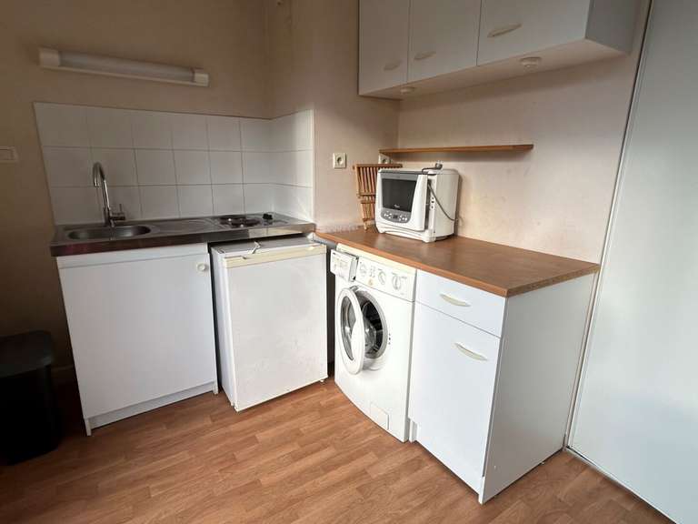 LA MADELEINE - Appartement meublé de type 2 comprenant une pièce à vivre avec cuisine ouverte aménagée et équipée (plaque de cuisson, hotte, réfrigérateur, lave-linge), une chambre, une salle d'eau avec wc. Le logement dispose d'un balcon, une cave et d'une place de stationnement extérieur. Chauffage individuel électrique.