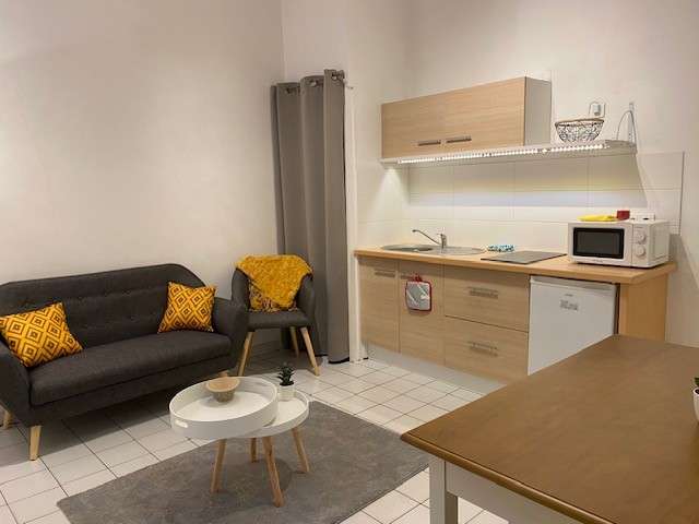Tout équipé : un lit ,canapé -lit, table, chaises, placard, bureau, plaques induction , micro onde.