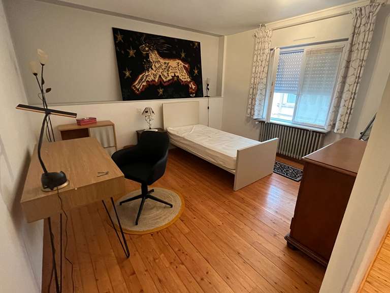 A proximité du centre-ville, dans un appartement rénové en 2023 en colocation de type 4 meublé et toute équipé se trouve une chambre aménagée de 12.80 m2 (lit simple, bureau, dressing) avec salle d'eau privative (Douche cabine, meuble vasque, wc). Cuisine aménagée et équipée commune ainsi qu'une buanderie avec lave-linge. Toutes charges comprises.