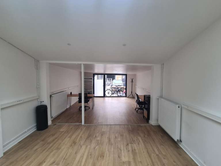 Plateau de bureau d’environ 47 m². L'accès au bureau se fait directement via la cour principale de 70m2 (dont 20m² couverts). La pièce a une baie vitrée en façade et un grand puits de lumière.