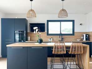 Maison de plain-pied avec cuisine ouverte sur le séjour, 2 chambres, salle de bain, wc séparé et cellier