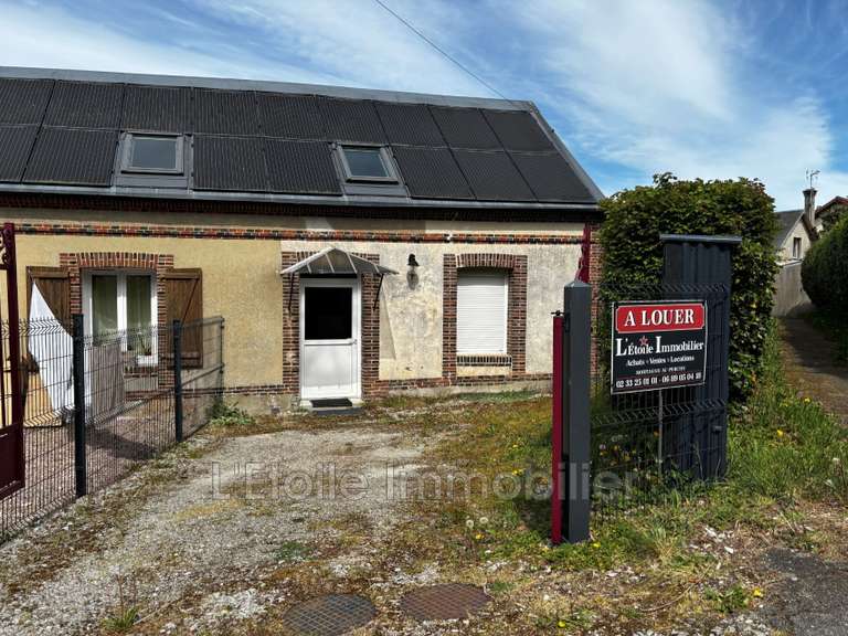 L'Etoile Immobilier vous présente à la location cette maison mitoyenne d'un côté en plein centre du bourg tous commerces d'AUBE à 6 km de L'AIGLE, elle se compose :
