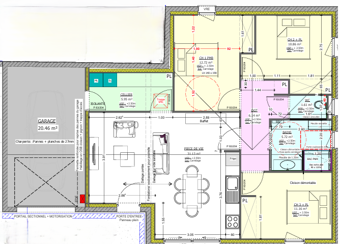 Belle pièce de vie lumineuse de 32 m², ouverte sur une terrasse exposée plein sud, sans vis-à-vis. Cuisine aménagée et équipée (plaque induction et hotte), cellier avec rangements, salle de bain avec double vasque et douche à l’italienne, WC séparés. 3 chambres avec placards intégrés. Garage de 21m². Normes PMR.