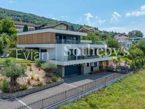 A proximité d'Evian, sur la commune de Neuvecelle, dans un cadre privilégié résidentiel, au calme, belle villa d'architecte de 288 m² sur un terrain arboré et clôturé de 2900 m2. Depuis sa situation exceptionnelle, cette propriété offre un magnifique panoramique surplombant le lac Léman.