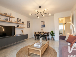 Le séjour lumineux de 41 m² s'ouvre sur une terrasse spacieuse de plain-pied, tandis que la cuisine moderne et les deux chambres, dont une suite parentale, garantissent un confort optimal.