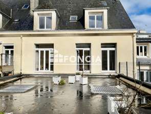 TRIPLEX D'EXCEPTION AVEC TERRASSE – TRIANGLE D'OR - BRESTAu cœur du très prisé Triangle d'Or, à deux pas du Cours Dajot, découvrez ce bien rare niché au sein d'une petite copropriété intimiste de seulement deux appartements.Développant 208,40 m² (loi Carrez), ce triplex aux volumes remarquables séduira les amateurs d'espace et de potentiel, à la recherche d'un lieu de vie à personnaliser selon leurs envies.Ses points forts : Une adresse privilégiée : quartier calme, recherché et à proximité immédiate des commerces, transports et commodités. Des volumes généreux et lumineux répartis sur trois niveaux. Une exceptionnelle terrasse privative de plus de 100 m², idéalement exposée sud-ouest, véritable prolongement des espaces de vie.Agencement :1er niveau : une vaste entrée, une cuisine indépendante, un séjour lumineux agrémenté de trois grandes ouvertures sur la terrasse, une suite parentale avec salle de bains attenante, ainsi qu'un WC séparé.2e niveau : quatre chambres, dont deux avec point d'eau, une salle de bains supplémentaire et un WC.3e niveau : une belle pièce sous combles d'environ 30 m², offrant de nombreuses possibilités d'aménagement (chambre, bureau, salle de jeux…).Un fort potentiel à révélerDes travaux […] Voir l’annonce immobilière >>