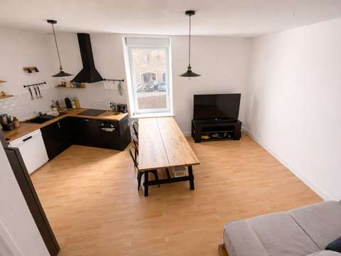 Appartement en centre ville avec terrasse comprenant une belle pièce de vie lumineuse, cuisine emménagée équipée, chambre, salle de bain, deux mezzanines et une place de parking.