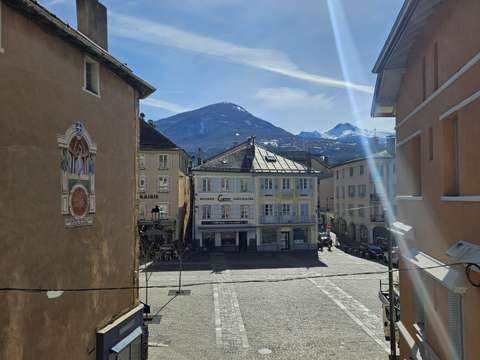Situé en plein cOEur d’Embrun, avec une vue directe et dominante sur la place de la mairie ainsi que sur les montagnes environnantes, cet appartement T2 de 39,27 m² (loi Carrez) bénéficie d’un emplacement central particulièrement recherché.