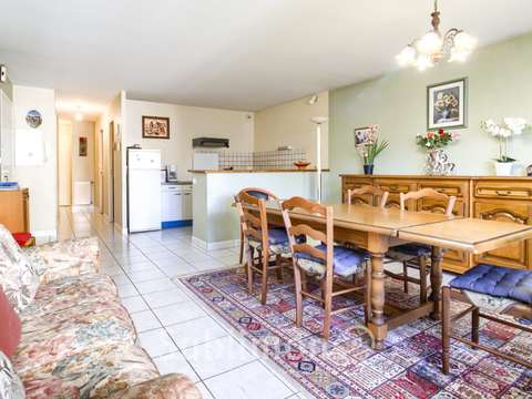 L'appartement dispose d'une cuisine aménagée, fonctionnelle. La salle de bains, équipée d'une baignoire, et les toilettes séparées complètent cet ensemble.