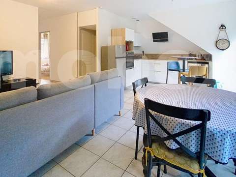 l' appartement dispose d'une pièce de vie avec cuisine équipée et aménagée, une belle luminosité, 2 chambres salle d'eau, WC et jardin