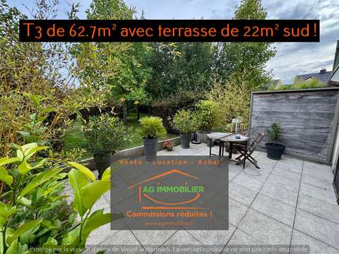 Notre agence est heureuse de vous présenter cet appartement T3 de 62.7m² en rez-de -terrasse de 22m² exposé sud avec parking aérien privatif et garage en sous-sol fermé ! Il comprend : Une entrée indépendante, un salon/séjour de 24m² donnant sur une terrasse de 22m² plein sud, une cuisine (Schmidt) de 8m² ouverte et équipée, 2 chambres avec placards dont 1 de 13m² avec accès à la terrasse, une salle de bains (avec baignoire et sèche serviette), un dégagement, un wc indépendant. Un appartement rare sur le marché en parfait état et bénéficiant d'un environnement calme et verdoyant !