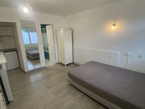 La pièce principale, d'une surface de 14m², est composée d'une kitchenette avec plaque à induction, un grand lit et de nombreux rangements. La salle de bain de 4m² a été récemment rénovée pour offrir tout le confort nécessaire baignoire, douche, wc, lavabo, miroir...