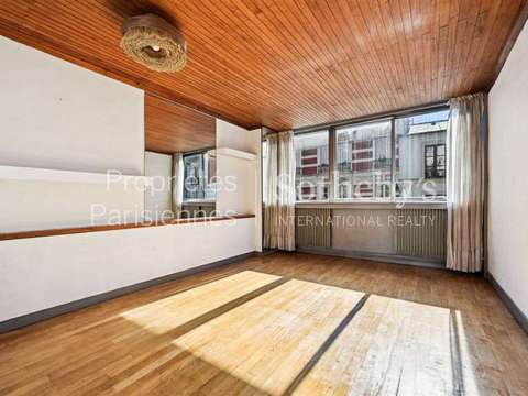Rare à Paris 14e : atelier d’artiste de 153 m² en pleine propriété, construit en 1972, à vendre, 5 pièces réparties sur trois niveaux.
