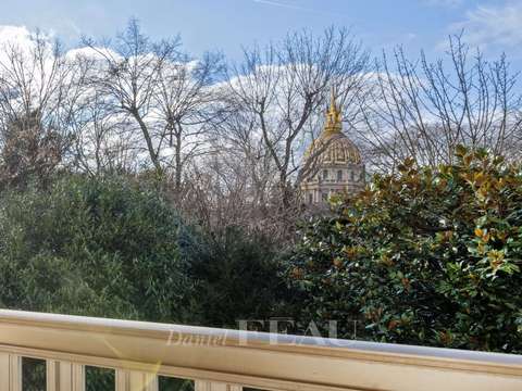 Exclusivité. Rare à la vente - Rue Barbet de Jouy, dans un immeuble moderne sécurisé et de haut standing construit en 1973, à l'emplacement des hôtels de Madame Lanvin et du Comte et de la Comtesse de Polignac, appartement familial et de réception, de 133 m² bénéficiant d’une bellevue dégagée sur le Dôme des Invalides et la verdure depuis un large balcon-terrasse de 18 m² exposé ouest.Au deuxième étage, l'appartement se compose d'une entrée, d'un double salon avec l’accès au balcon, d'une grande cuisine avec une buanderie attenante, d'une salle à manger, de deux chambres (possibilité d'une troisième chambre), de deux salles de bains avec toilettes […] Voir l’annonce immobilière >>