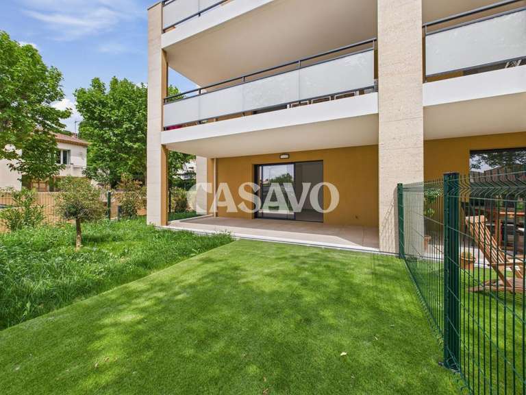 iad France - Stéphane Soulie vous propose: Appartement T3 en rez de chaussée de 71.5 m² avec terrasse, jardinet, garage attenant et place de parking sur Aix-en-Provence, secteur Bagatelle