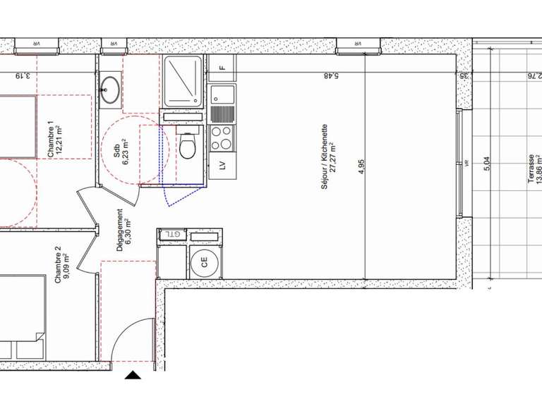 Situé au 1 er étage, cet appartement T3 de 61 m² environ habitables se prolonge par une terrasse de 14 m² environ.