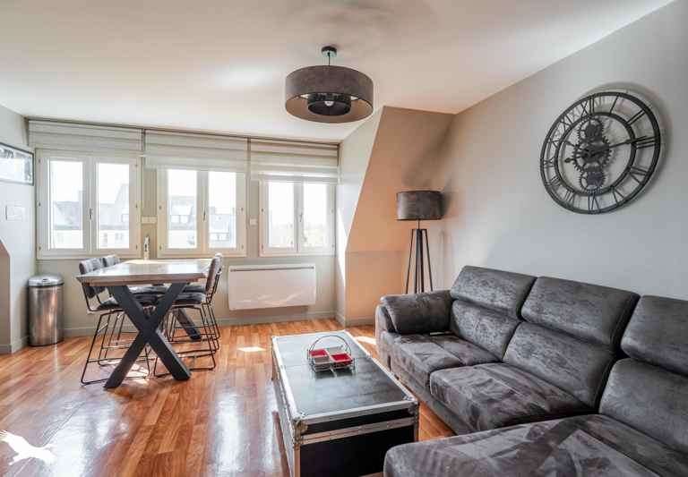 L'agencement intérieur a été étudié avec attention afin de proposer des volumes équilibrés et une circulation agréable. Le logement comprend une entrée, un séjour lumineux avec cuisine ouverte, idéal pour partager des moments conviviaux dans un espace de vie moderne et chaleureux.