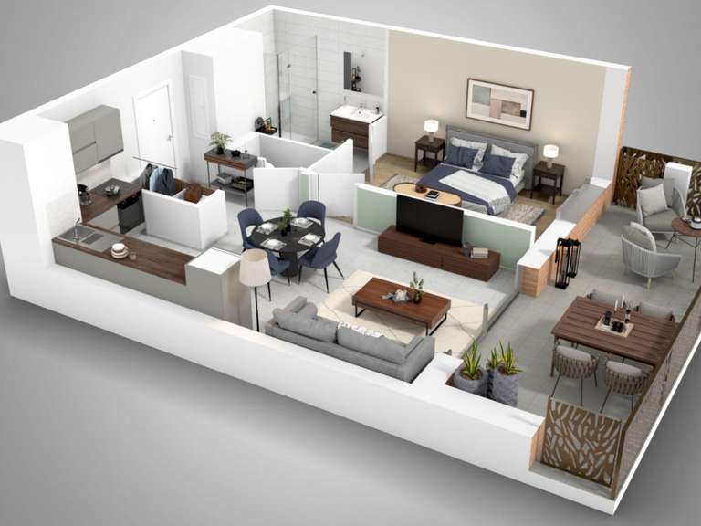 D’une surface de 41 m² environ habitables, cet appartement T2 situé en rez-de-chaussée surélevé se prolonge par une terrasse de 11 m² environ. Il comprend un séjour/cuisine de 21 m² environ, une chambre confortable et une salle d’eau moderne.