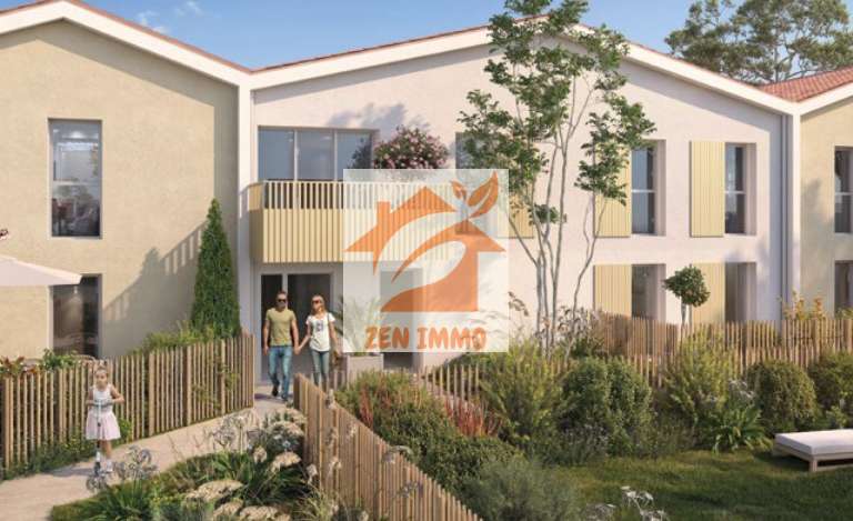 Appartement T2 en rez de jardin, en VEFA, proche de toutes les commodités (commerces, médecins, écoles...), des pistes cyclables, comprenant un séjour avec cuisine équipée, une chambre, une salle de bains avec WC, avec terrasse et un jardin.