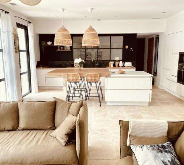 L’espace de vie, d’une superficie de 95 m² environ, se déploie dans une parfaite continuité. Il accueille une cuisine, un espace salle à manger, un séjour et un salon télévision, l’ensemble baigné de lumière et largement ouvert sur la terrasse.