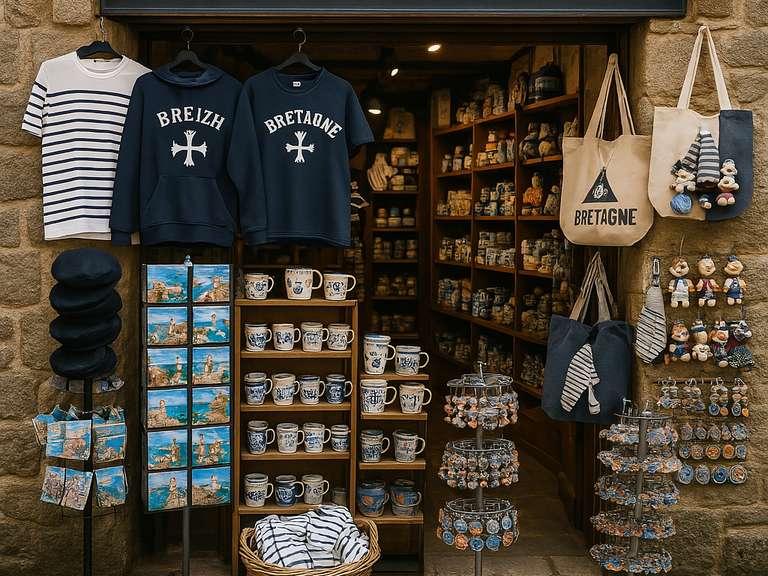 Produits : Spécialisé dans la vente de souvenirs bretons, prêt-à-porter, bijoux artisanaux, et bien plus encore. Une sélection de produits de qualité, symbolisant l'authenticité et le patrimoine de la Bretagne.