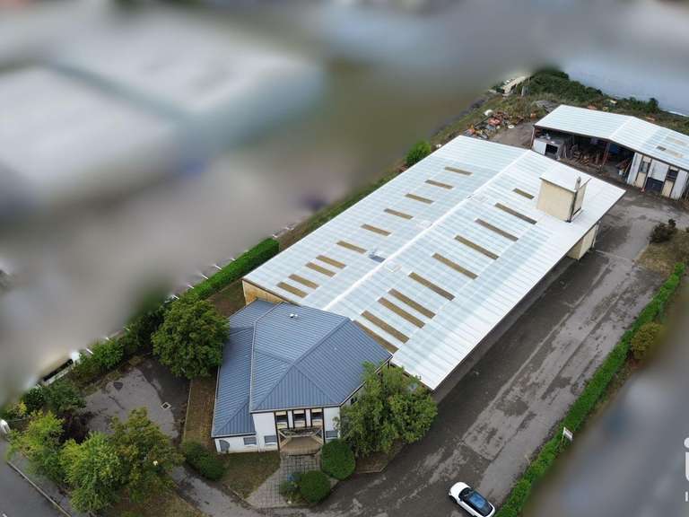 L’atelier d’une surface de 1640 m2 environ dispose d’une structure avec charpente métallique, d’une couverture en bacs acier isolés, de fenêtres vitrées sur deux façades, apportant une belle luminosité naturelle. La hauteur sous faîtage est de 6,5 m, pour une hauteur utile d’environ 6 m. L’accès se fait par 2 portes sectionnelles grand format (hauteur d’environ 4 m). Le chauffage est au gaz par aérothermes.