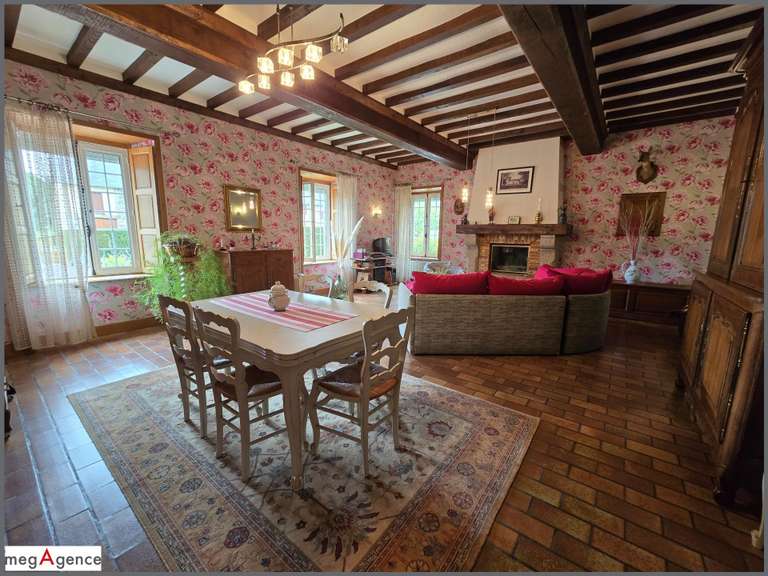 Ce manoir de 230 m² est une véritable harmonie entre élégance et confort de part ses vastes espaces généreux composés au rez-de-chaussée d'une entrée, une spacieuse pièce de vie avec cheminée, un lumineux salon-séjour offre un espace de vie convivial pour vous détendre, véranda et espace terrasse. A l'étage, 4 chambres spacieuses, une salle de bains, wc.