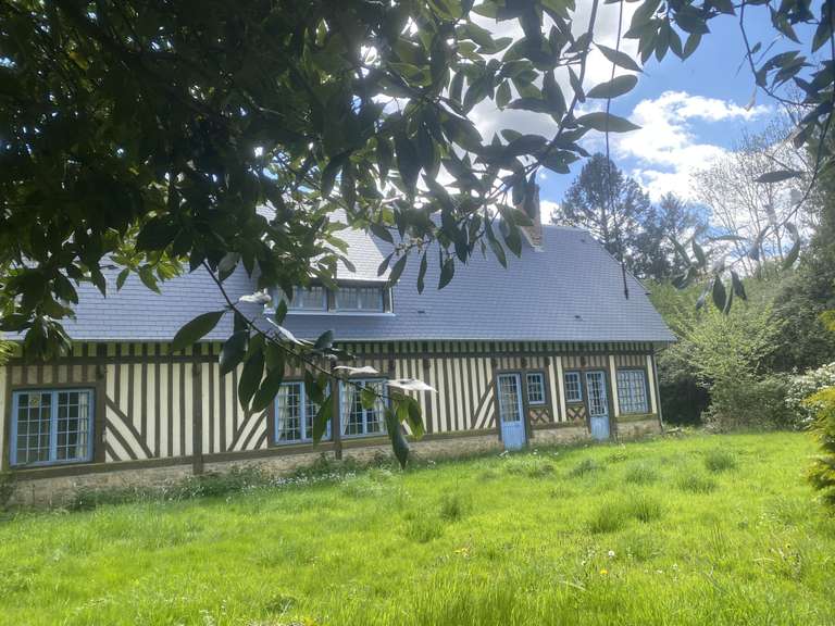 10 minutes de Lisieux Ouest, dans bourg avec école primaire maternelle, boulangerie et salon de coiffure, propriété à restaurer composée d'une ancienne chaumière d'environ 160 m2 habitables avec au rdc séjour salon avec cheminée, cuisine, arrière cuisine, une chambre, salle de douche, wc.