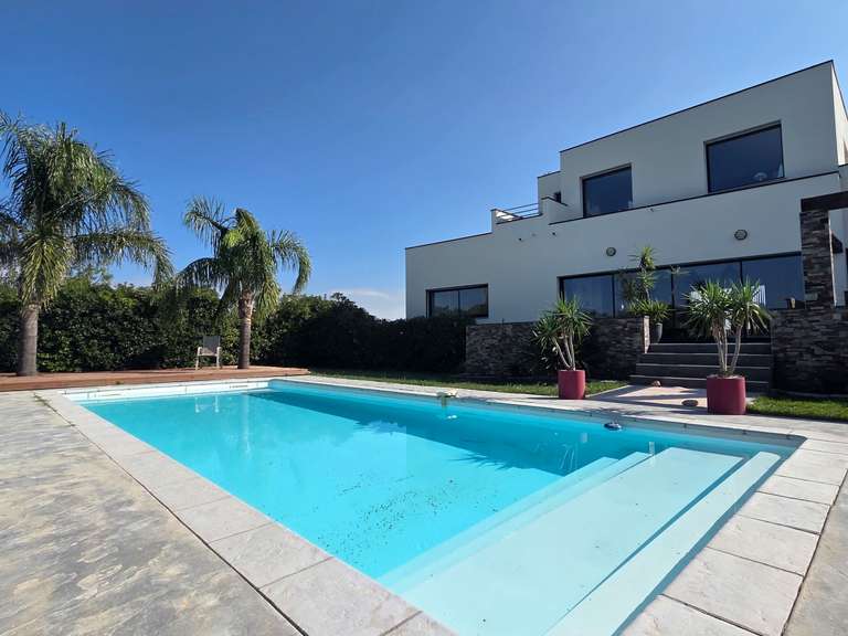 Villa d'architecte avec une vue à 360 degrés sur la toute la région et le Canigou dans un secteur prisé avec de belles prestations, T4 de 211 m2 de surface habitable, sur un terrain de 1 740 m2 avec garage en sous-sol de 60 m2, une piscine en béton de 5 par 10 sans vis à vis, chauffage au sol.