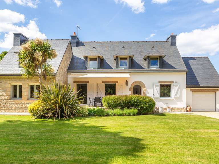 Riec-sur-Belon - Dans un écrin de verdure entièrement clos et paysagé d'environ 5000m2 , cette propriété de 350m2 rénovée vous séduira par ses volumes généreux et ses prestations de qualité. Dès l'entrée, vous serez charmé par un hall de 29 m2 et sa belle hauteur sous plafond, donnant sur un sur la pièce de vie et sa cuisine équipée, prolongée par une arrière-cuisine discrète et fonctionnelle . Un salon complémentaire de 22m2 sur parquet agrémente le rez-de-chaussée. A l'étage, le couloir dessert 6 chambres aux belles dimensions dont une avec douche privative et trois avec points d'eau, une salle de bain de 10m2, une mezzanine ainsi qu'une suite parentale de 24 m2 avec salle d'eau privative. Une seconde partie habitable avec bureau d'environ 10m2, une salle de jeux de 18m2, une buanderie et une seconde suite parentale de 24m2 avec salle d'eau, vous offrira de l'espace supplémentaire ou la possibilité de chambres d'hôtes, avec accès indépendant. Côté jardin, la piscine chauffée de 8m x 3,70m s'intègre harmonieusement au parc, entre bois et verger, pour des instants de détente en toute sérénité. La propriété […] Voir l’annonce immobilière >>