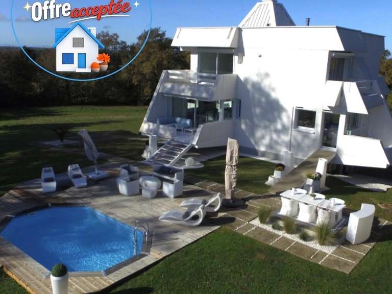 iad France - Christel Lajous vous propose: J’ai le plaisir de vous présenter une belle maison d’architecte atypique T6 d’une surface de 208 m², installée au cOEur d’un domaine forestier privé de 6 hectares à Saint Loubouer dans les Landes.