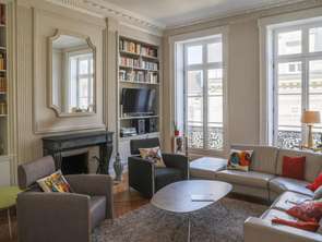 Au rez-de-chaussée : un hall d'entrée de 17 m² avec une hauteur sous plafond de 4,2m, un carrelage orné et des boiseries offrant un choix de portes distribuant les pièces du rez-de-chaussée. A gauche, un grand salon (48m²) avec un parquet en chêne d'origine en chevrons, une cheminée en marbre blanc et des boiseries bleues et blanches. Une pièce à triple exposition avec beaucoup de lumière naturelle menant à une bibliothèque de 17 m² à l'arrière. Cette pièce à double exposition est également dotée d'un parquet en chevrons, d'un plafond orné et d'un accès au hall d'entrée arrière avec son magnifique escalier double en pierre, ses vitraux et son haut plafond voûté de 12 m². En revenant au hall d'entrée, à droite, se trouve la salle à manger (39 m²), également dotée d'un plancher en chêne en chevrons, d'un plafond orné et d'une double exposition. A l'arrière se trouve la cuisine de 20m², actuellement en cours de rénovation par les propriétaires actuels. Le rez-de-chaussée est complété par des toilettes, […] Voir l’annonce immobilière >>