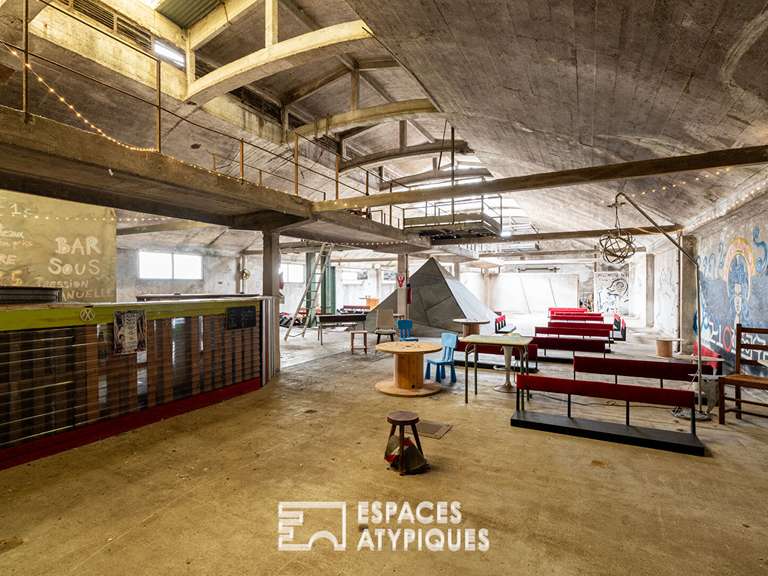L'espace intérieur impressionne par sa structure de béton banché et ses éléments techniques conservés, tels que les trémies et les conduits métalliques, qui confèrent au lieu une identité architecturale puissante. Le rez-de-chaussée se prête magistralement à la création de pièces de réception aux dimensions cinématographiques, tandis que les niveaux supérieurs offrent des plateaux bruts à aménager. L'ensemble permet d'imaginer un loft d'exception, une galerie d'art ou une résidence d'architecte alliant confort contemporain et patrimoine industriel.