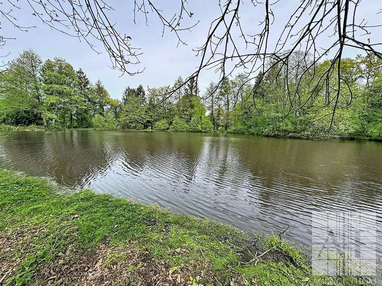 Un plan d'eau de 3 400 m², autrefois bien entretenu, avec berges empierrées et accès tout autour.