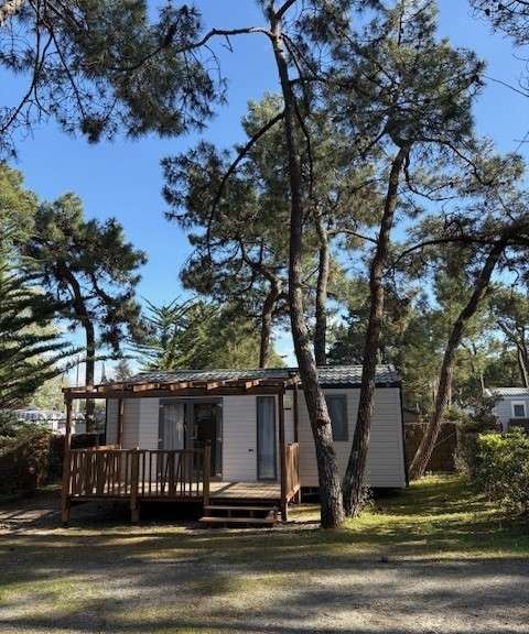 Le mobil‑home est situé sur le camping La Conge, avenue de la Pège Saint Hilaire de riez.