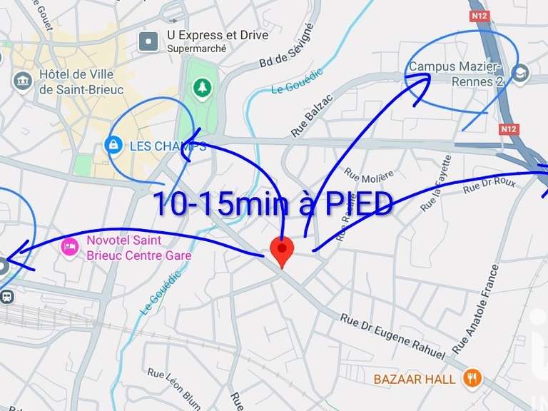 iad France - Jaehee Dincuff vous propose: Immeuble composé d’une HABITATION de 6P(130m2) + du LOCAL COMMERCIAL(108m2) au rdc, à Saint-Brieuc, IUT de St-Brieuc et Campus Mazier-Rennes 2 à 15min à PIED, Centre commercial(Centre ville) à 5-10min à PIED, GARE de Saint-Brieuc à 15min à PIED, Accès rapide à la N12, à Saint-Brieuc, Côtes d’armor, Bretagne,