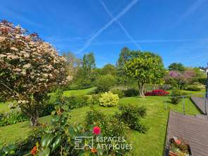 A l'extérieur, la propriété dévoile tout son caractère : un bel étang orné de roseaux, un jardin arboré et plusieurs cabanons qui invitent à imaginer différents usages : atelier, espace détente ou coin lecture. Le terrain, joliment vallonné, favorise une sensation d'intimité et d'harmonie avec la nature environnante.