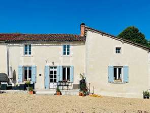 Située dans un petit hameau paisible près d'Aubeterre-sur-Dronne, cette propriété de caractère bénéficie d'un environnement privilégié en impasse, avec une belle vue dégagée sur la campagne. Entièrement rénovée avec exigence par ses propriétaires actuels, la maison (mitoyenne) offre aujourd'hui un niveau de confort et de finition rare sur le marché local. L'ensemble des travaux a été réalisé : techniques, isolation des murs, sols et plafonds, menuiseries bois double vitrage, chauffage par pompe à chaleur, production d'eau chaude thermodynamique avec un excellent classement énergétique (DPE B), citerne d'eau de pluie de 28.000m3. D'une surface habitable d'environ 250 m², la maison séduit immédiatement par ses volumes généreux et son atmosphère chaleureuse, où poutres apparentes, murs en pierre calcaire et beaux parquets en chêne créent un équilibre réussi entre authenticité et confort contemporain. Le rez-de-chaussée accueille une grande cuisine entièrement équipée avec espace salle à manger, un vaste salon avec poêle intégré dans une cheminée en pierre, un bureau, une bibliothèque, chaque pièce avec accès direct au jardin, ainsi qu'une entrée spacieuse, une buanderie, des toilettes et plusieurs pièces de rangements. Deux escaliers mènent à différents espaces : un entresol idéal comme chambre, dressing ou un espace de rangement, et un étage comprenant trois belles chambres, chacune disposant de sa propre salle d'eau ou salle de bains avec WC. La suite principale bénéficie en outre d'une terrasse exposée plein sud. À l'extérieur, le terrain clos de 3 900 m², exposé sud, offre un cadre de vie agréable avec différents espaces de détente, dont un terrain de pétanque. […] Voir l’annonce immobilière >>