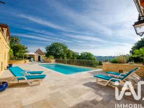 iad France - Anne FOUQUET vous propose: Nichée au cOEur du Périgord Noir, cette élégante propriété lumineuse (de 250 m2 habitables) allie le charme authentique de la pierre périgourdine et du confort moderne. Située sur les hauteurs du pittoresque village de Daglan, au coeur de la chaleureuse vallée du Céou, cette propriété offre un cadre de vie exceptionnel.Dominant la campagne environnante avec ses vues à couper le souffle, elle conjugue harmonieusement espaces généreux, équipements de qualité et situation privilégiée à proximité des services et commerces (4 km), des sites emblématiques du Périgord Noir : Sarlat, La Roque-Gageac, Domme, Beynac, Castelnaud-la-Chapelle, Les Milandes et les grottes de Lascaux.Le rez-de-chaussée offre une généreuse pièce de vie (60 m2) avec cheminée et poêle à bois, salon-bibliothèque panoramique (climatisé), cuisine équipée ouverte, suite parentale (27 m2) avec salle de douche, WC et buanderie, Au 1er étage, palier desservant 3 chambres ainsi qu'une mezzanine, salle d'eau et WC. Le sous-sol comprend chaufferie, atelier, cave et jardinerie. Terrasse avec vue panoramique sur la vallée. Piscine au sel chauffée et sécurisée par un rideau électrique (10 x 5m), vaste pool-house équipé d'une cuisine d'été, douche, WC et pigeonnier. Garage (26m2). Le terrain de 1,2 hectare (12 000 m2) offre un espace exceptionnel alliant intimité, nature et vues panoramiques. Il comprend des zones arborées (fruitiers), un petit bois et de la prairie. Chauffage au sol par pompe à chaleur, production d'eau chaude électrique. Alimentation électrique en triphasé et prise de charge pour véhicule électrique. Diagnostic de performance énergétique en B. Double vitrage récent. Assainissement individuel. Fibre optique. Adoucisseur d'eau. Idéal pour résidence principale ou secondaire de prestige.Honoraires d'agence à la charge du vendeur.Information d'affichage énergétique sur ce bien : classe ENERGIE B indice […] Voir l’annonce immobilière >>