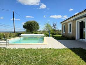 L’Agence Elusate vous propose en exclusivité cette belle villa de plain-pied construite en 2010, offrant tout le confort moderne et bénéficiant d’un bon DPE. Située dans un quartier résidentiel calme et préservé, cette maison réunit tous les atouts d’une vie paisible à la campagne tout en restant proche des commodités.Dès l’entrée, vous découvrirez une spacieuse pièce de vie baignée de lumière, avec espace repas et salon prolongée par une véranda. La cuisine moderne et entièrement équipée est parfaitement intégrée à l’espace de vie; elle est complétée par un cellier attenant très pratique, ainsi que par un accès direct au garage. Une jolie terrasse prolonge la pièce de vie offrant un superbe panorama (vue sur les vignes et campagne environnante) ainsi qu'une piscine traditionnelle 8x4x1,50m sécurisée. Elle vous permettra de profiter des beaux jours en famille ou entre amis idéale pour se rafraichir en période estivale.La partie nuit se compose de quatre chambres (9 à 12.30m2) avec dressings, d’une large salle d’eau et deux wc. L’ensemble offre un confort optimal pour un quotidien simple et agréable que ce soit pour une famille, pour recevoir ou profiter d’une retraite sereine. Le jardin facile d’entretien, se prête aussi bien aux jeux des enfants qu’à la création d’un potager ou à des moments de détente en plein air. Côté technique, la maison dispose d’une pompe à chaleur avec climatisation réversible gainable, double vitrage et un garage avec porte electrique, permettant de se garer facilement mais également de stocker ou bricoler.À deux pas d'un village qui propose médecins, […] Voir l’annonce immobilière >>