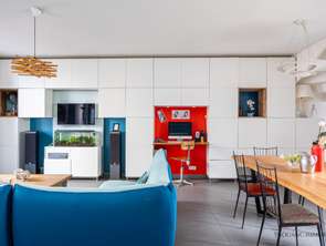 Belle pièce de vie offrant un séjour avec une cuisine aménagée et équipée semi-ouverte.