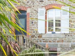 Dès l'arrivée, un charmant perron en granit vous accueille et vous guide vers une entrée où trône un escalier authentique.