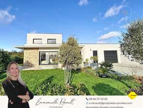 En Exclusivité, Emmanuelle RENAULT Propriétés Privées Immobilier, vous présente « Joy's », une superbe maison d'architecte de 2020, signée par un architecte morbihannais de renom. Elle est harmonieusement implantée sur un terrain paysagé et piscinable de 1760 m², nichée dans un environnement résidentiel très prisé, à pied des commerces et à seulement 10 minutes de Vannes, sur la commune de Meucon.DESCRIPTIFDès l'entrée, la lumière s'impose. Une entrée avec placards s'ouvre sur une superbe pièce de vie d'environ 42 m², qui séduit par sa hauteur sous plafond de 2,65 m et ses larges baies vitrées ouvertes sur la terrasse et le splendide jardin. Les volumes sont parfaitement proportionnés, les perspectives travaillées, la circulation est naturelle et fluide.La cuisine ouverte, parfaitement aménagée et équipée, prolonge l'espace avec élégance et intègre un coin repas convivial.Le rez-de-chaussée propose une très belle vie de plain-pied :* Une chambre de 12 m², avec placards, donnant sur le jardin.* Une seconde pièce modulable de 7 m², idéale pour une chambre complémentaire, un dressing ou un bureau.* Une salle d'eau avec douche à l'italienne* Buanderie/cellier et WC séparés.A l'étage, trois chambres baignées de lumière, de 10,5 m², 10,8 m² et 9,1 m², composent l'espace nuit, accompagnées d'une salle de bains et d'un palier distribuant l'ensemble avec fluidité. Un étage agréable et chaleureux, parfaitement adapté à une vie de famille ou pour recevoir en toute tranquilité.A l'extérieur, le terrain piscinable de 1760m2, a été pensé comme un écrin, dans le respect de la nature et avec une réelle sensibilité paysagère : Oliviers, arbres fruitiers (poirier, cerisier), eucalyptus, cornouiller, roseraie, agapanthes, un verger structuré, un bassin à poissons. Une véritable bulle de sérénité.COTE TECHNIQUE : Maison d'architecte de 2020. Pompe à chaleur (chauffage au sol au rez-de-chaussée, radiateurs à l'étage), […] Voir l’annonce immobilière >>