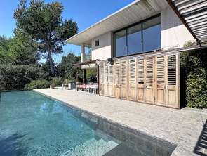 iad France - Géraldine PRATS vous propose: Construite en 2011, cette propriété contemporaine offre une vue exceptionnelle sur le Luberon. Implantée sur un terrain de 1 663 m², elle développe environ 186 m² habitables et séduit par sa construction monobloc aux lignes épurées, proposant un cadre de vie alliant élégance, confort et nature.Les volumes sont généreux et baignés de lumière grâce à de larges ouvertures exposées sud-est, prolongées par des volets en bois à galandage permettant une continuité entre intérieur et extérieur. Les sols en pierre naturelle et en béton ciré confèrent à l’ensemble une atmosphère chaleureuse, complétée par une cheminée à foyer ouvert.L’espace de vie s’articule autour d’une cuisine ouverte sur la salle à manger, prolongée par un salon lumineux offrant une vue sur le paysage environnant. L’agencement est fonctionnel, pensé pour un quotidien confortable comme pour recevoir.La partie nuit se compose de trois chambres, dont une en rez-de-chaussée. Deux d’entre elles disposent de leur salle d’eau avec douche à l’italienne, tandis que la troisième bénéficie d’une salle de bain indépendante avec douche à l’italienne et doubles vasques. À l’étage, les deux chambres profitent chacune d’un accès à une terrasse, offrant une vue sur le Luberon et prolongeant agréablement les espaces nuit vers l’extérieur.Deux WC, répartis sur chaque niveau, et une buanderie complètent cet espace.La piscine à débordement de 15 x 3,50 m, équipée d’un volet immergé, s’intègre dans le paysage et invite à la détente face au Luberon. Une douche extérieure, un terrain de boules ainsi qu’un salon d’extérieur viennent parfaire cet espace dédié à la convivialité.Le jardin bénéficie également d’un système d’arrosage automatique.Un espace de stockage indépendant d'environ 20 m² complète les prestations, sans être assimilé à un garage.Côté équipements, la maison dispose […] Voir l’annonce immobilière >>