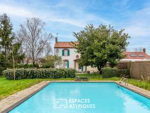 Idéalement située au coeur du bourg d'Avrillé, cette propriété singulière déploie un potentiel remarquable sur une vaste parcelle paysagée de 1400m2.