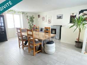 Idéalement située dans un environnement pratique et recherché, cette maison profite d’un emplacement privilégié permettant un accès rapide aux commerces du centre-ville, au collège, écoles et crèche. Elle offre ainsi un cadre de vie particulièrement agréable, parfait pour une vie de famille alliant confort et proximité des services.Entièrement rénovée, la maison développe 161 m² habitables aux volumes généreux et à l’agencement fonctionnel. Le rez-de-jardin accueille un grand salon lumineux avec placard, un wc indépendant, un espace bureau/bibliothèque idéal pour le télétravail, ainsi qu’une chambre équipée d’un meuble vasque, offrant la possibilité d’exercer une profession libérale. Au rez-de-chaussée, vous découvrirez un séjour chaleureux agrémenté d’un poêle à granulés, ouvert sur une cuisine aménagée et entièrement équipée, pensée pour des moments conviviaux. Ce niveau dispose également d’une suite parentale avec dressing et salle d’eau privative.Le premier étage propose trois grandes chambres, une salle d’eau avec wc et une buanderie.À l’extérieur, une terrasse permet de profiter pleinement des beaux jours tandis que le jardin, entièrement clos avec portail électrique, assure intimité et sécurité. Un cabanon complète les espaces de rangement ainsi qu’un garage d’environ 24 m² vient parfaire l’ensemble. La propriété est reliée à la fibre et raccordée au tout-à-l’égout, garantissant un confort moderne au quotidien.Cette maison clé en main, spacieuse et parfaitement […] Voir l’annonce immobilière >>