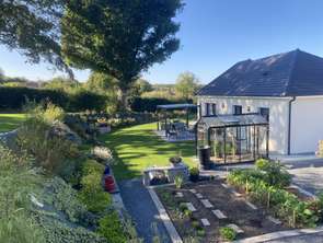 Sortie d'ORBEC-EN-AUGE (14290), au calme et bénéficiant d'une superbe vue, Venez découvrir les prestations pour cette construction Maison COUDRELLE de 2021, implantée au cœur du jardin joliment arboré et fleuri, de plain pied elle se compose d'une belle entrée, agréable séjour salon de 40 m2 lumineux traversant, donnant sur la terrasse équipée d'une pergola, serre, éclairages extérieurs vue sur le joli jardin, une agréable cuisine décorée avec verrière entièrement équipée, 2 suites parentales avec chacune leur salle de douche, 2 WC, un bureau, une buanderie. Nombreux rangements. Portail électrique. Chauffage au sol. Volets électriques fenêtres coulissantes. Terrasse exposée Sud-Ouest de 35 m2 équipée d’une pergola. Arrosage automatique. Robot de tonte. Garage double équipé de portes automatiques d'eau et d'électricité possibilité de le raccorder à l'assainissement collectif, une kitchenette chauffé, et à l'étage une pièce palière avec […] Voir l’annonce immobilière >>